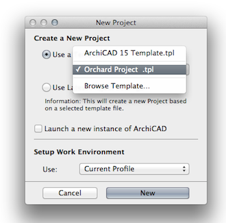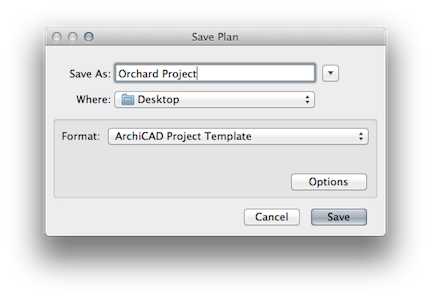 空の新規プロジェクトファイルを開いて独自の設定をおこなうか、あるいはテンプレートとして使用したいARCHCIADプロジェクトファイルを*.tplの拡張子で保存します。