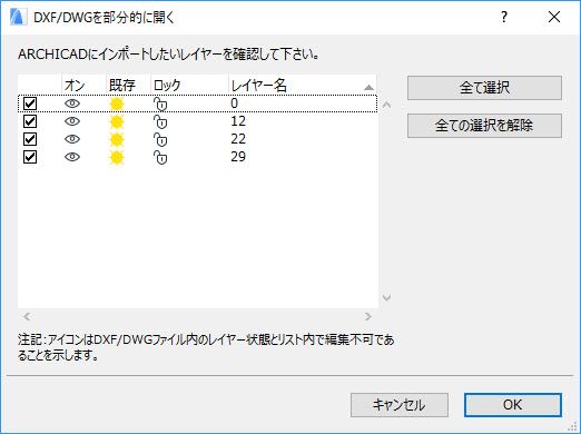 取り込むレイヤを選択し、OKボタンをクリックします。